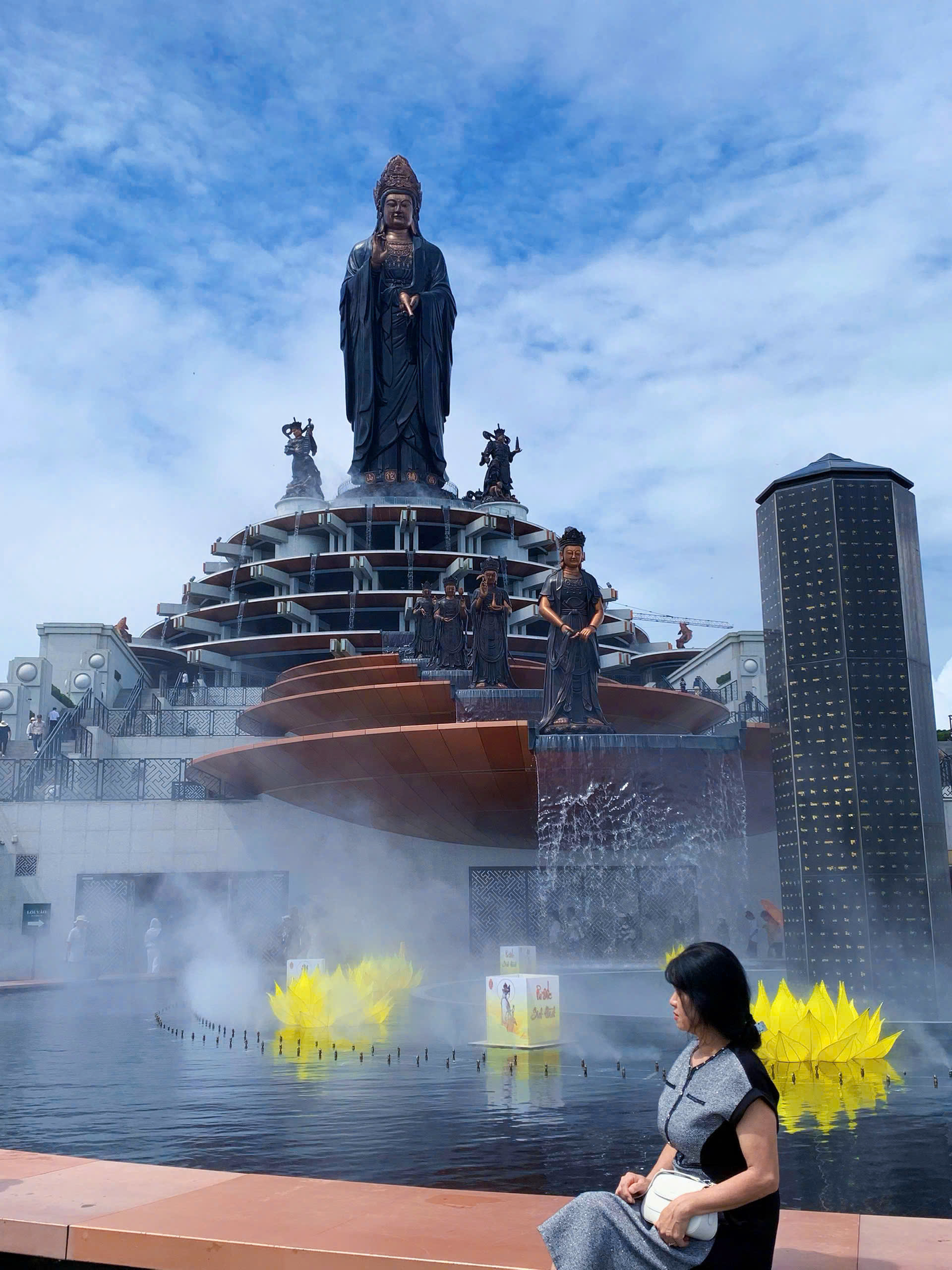 + Đại tượng Phật Bà Tây Bổ Đà Sơn: Đây là bức tượng bằng đồng đỏ tinh khiết có độ cao 72m, tượng Phật Bà sở hữu vẻ diện mạo từ bi, hướng tầm mắt bao dung xuống nhân gian từ đài tháp uy nghi. Giữa không gian mây ngàn gió núi và tiếng nước chảy róc rách, đứng dưới chân tượng, bạn sẽ cảm nhận được một sự an lạc và thanh tịnh tuyệt đối.